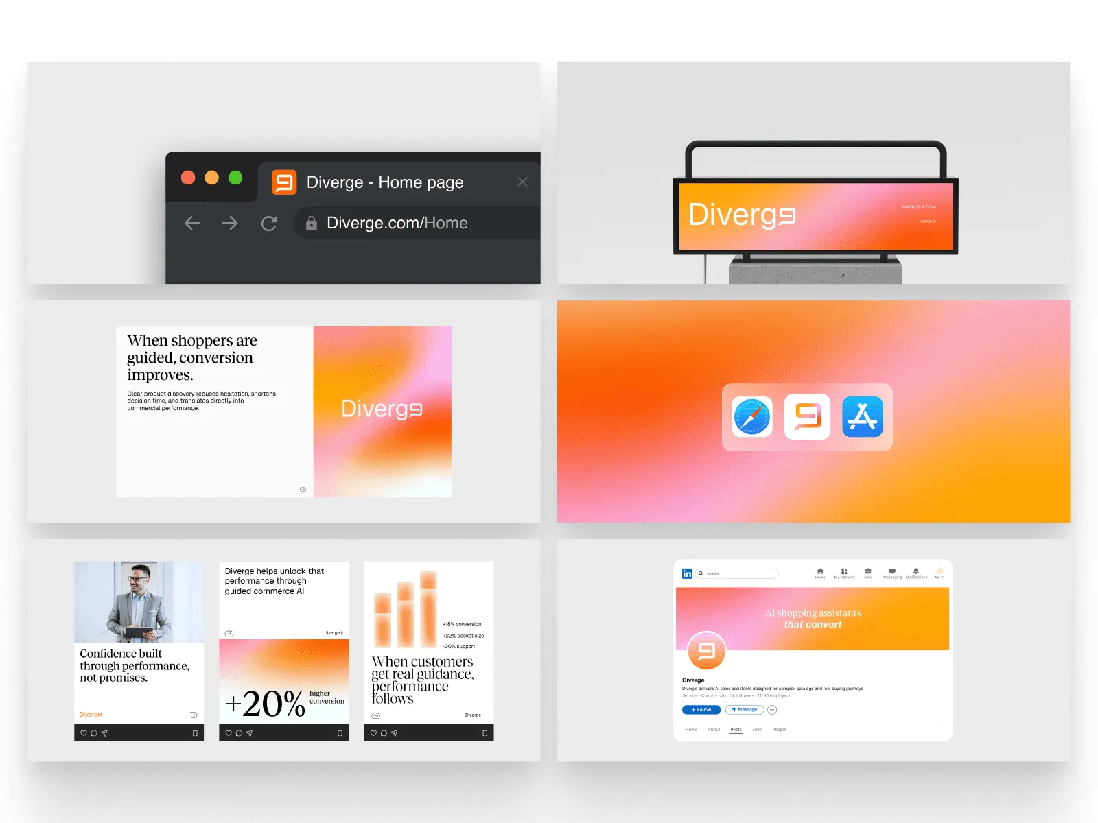 +41% sales conversion for Diverge's clients — pre-existing product metric now surfaced as the hero claim