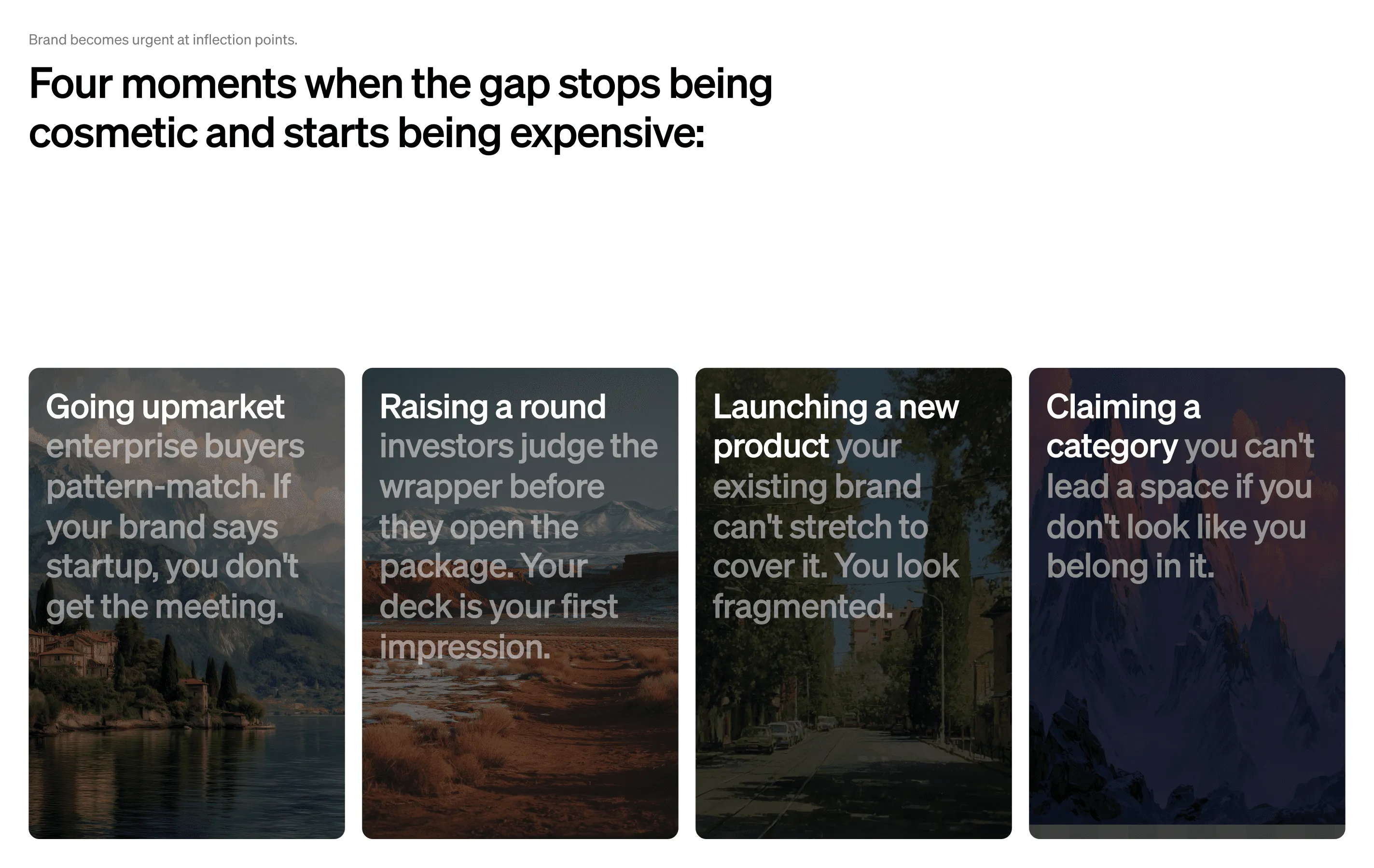 You started selling to SMB. Now you're pitching enterprise, and the brand still reads like a startup. The prospect expects a vendor that could already be the category leader. Your website says you're still figuring it out.